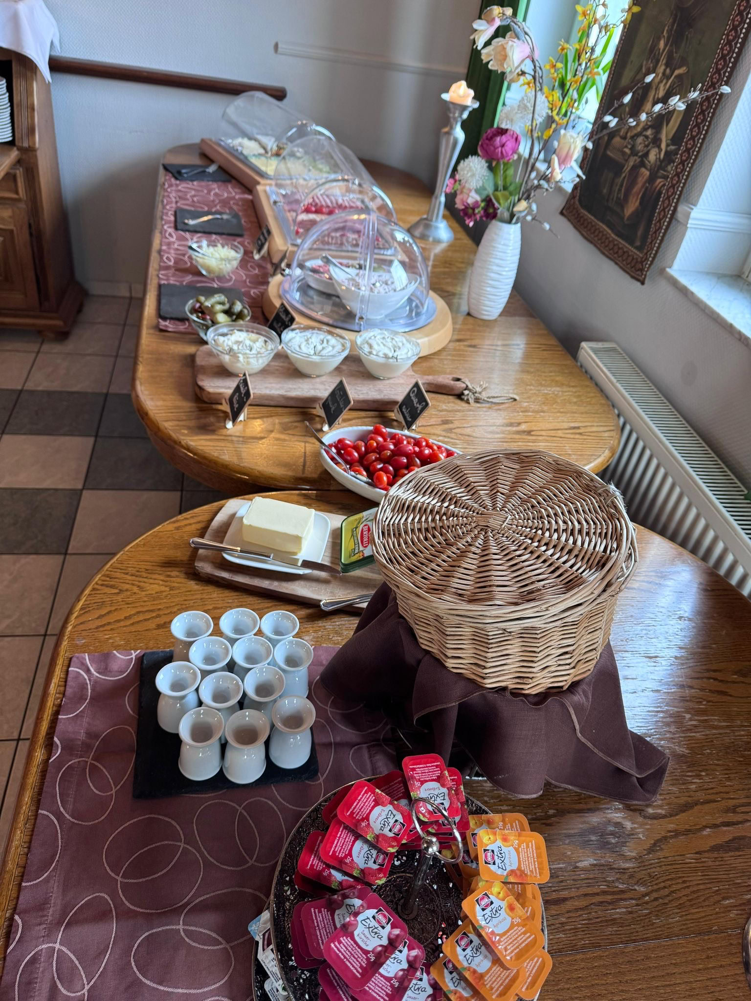 Unser Frühstücksbuffet bieten wir samstags und sonntags von 8:00 bis 11:00 Uhr an. Individuelle Uhrzeiten sind nach vorheriger Absprache selbstverständlich möglich.